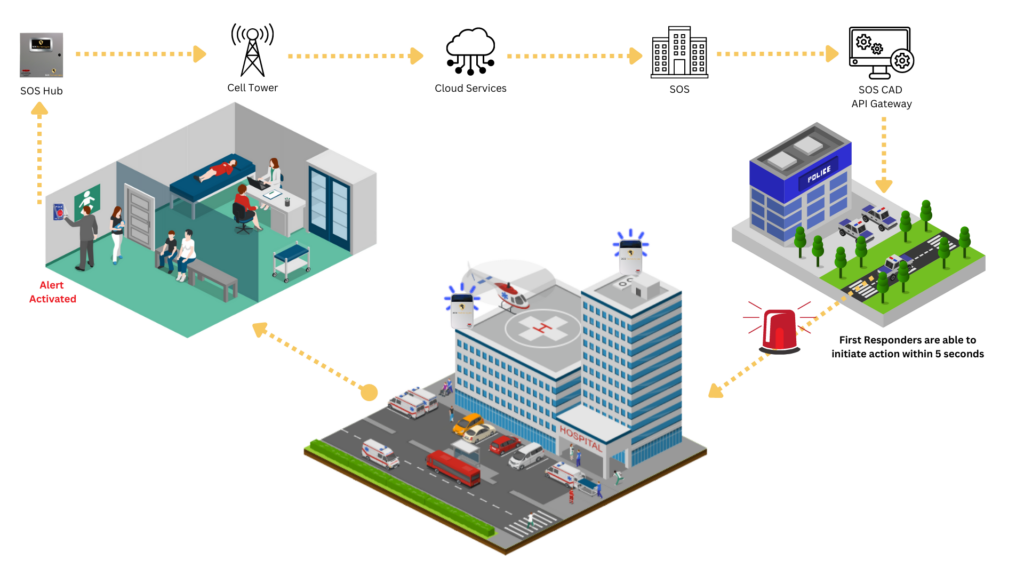 Addressing hospital security challenges requires a multi-disciplinary, multi-pronged approach that includes strategies, tactics, resources, and new technologies. SOS is dedicated to creating a safer hospital workplace by providing technology solutions that help hospitals both prevent and better respond to workplace violence.